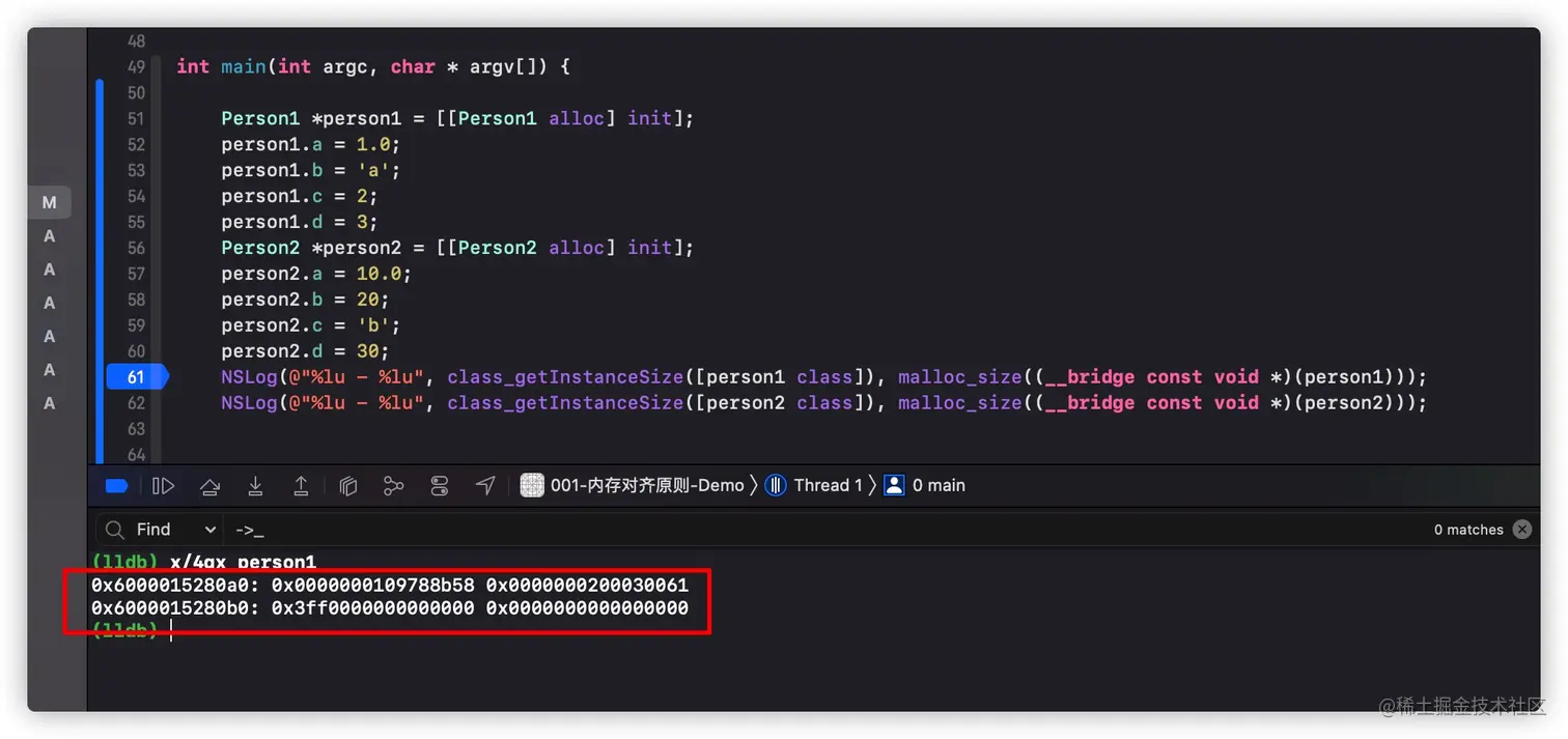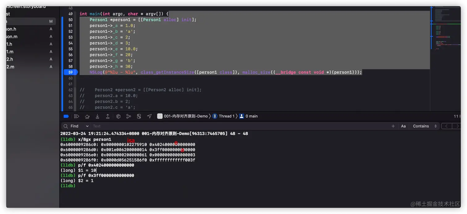 2022-03-22 11:16:57.680721+0800 002-系统内存开辟分析-Demo[55961:5777855] personSize = 40