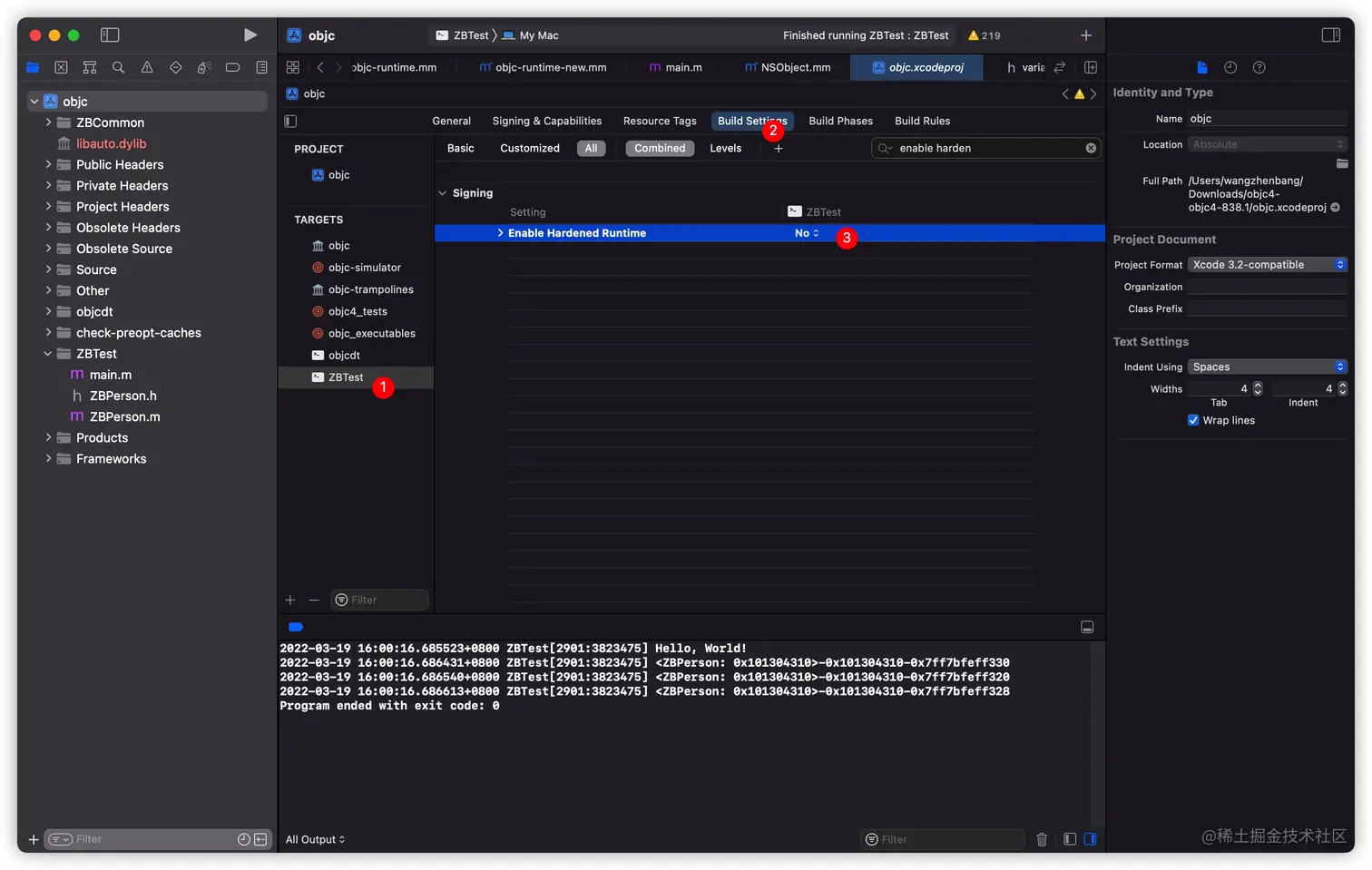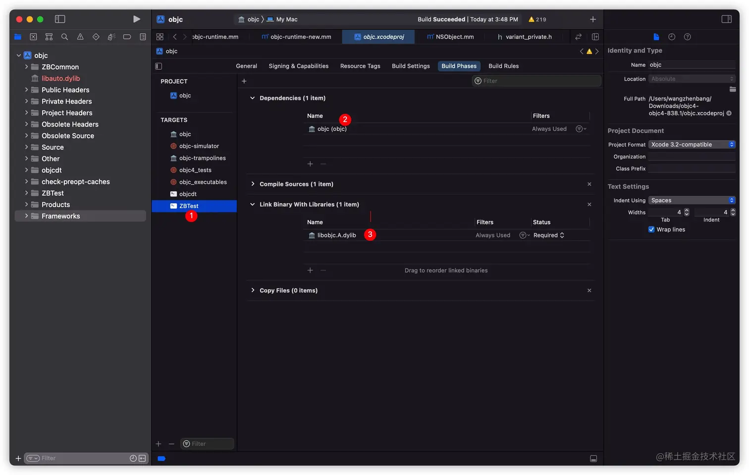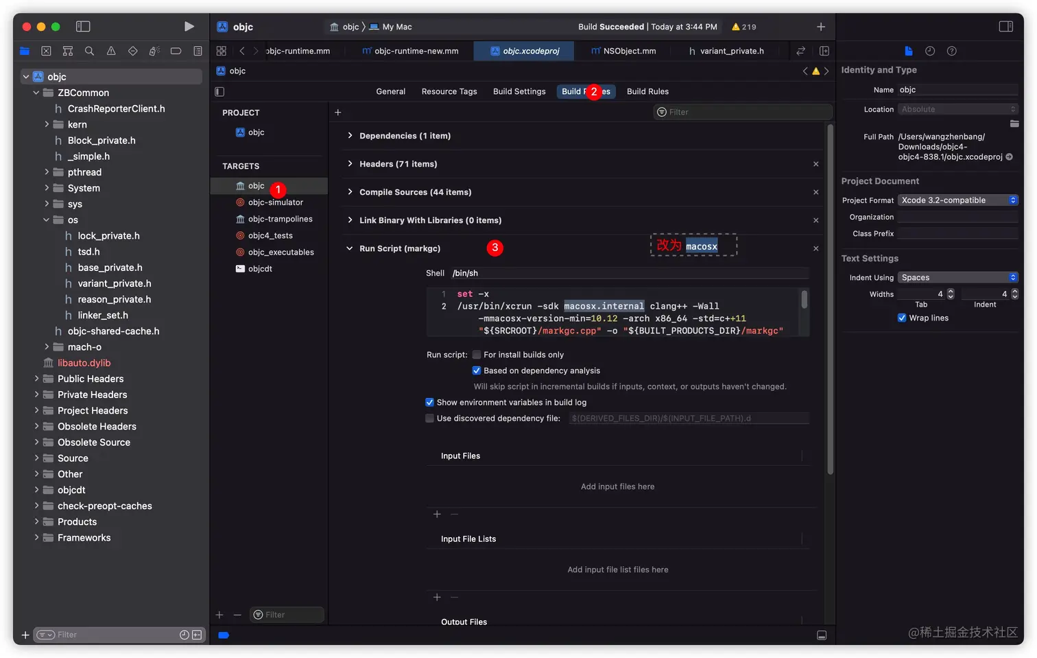编译源码库之前,你需要准备: Mac OS 12.2 Xcode 13.2 objc4-838.1