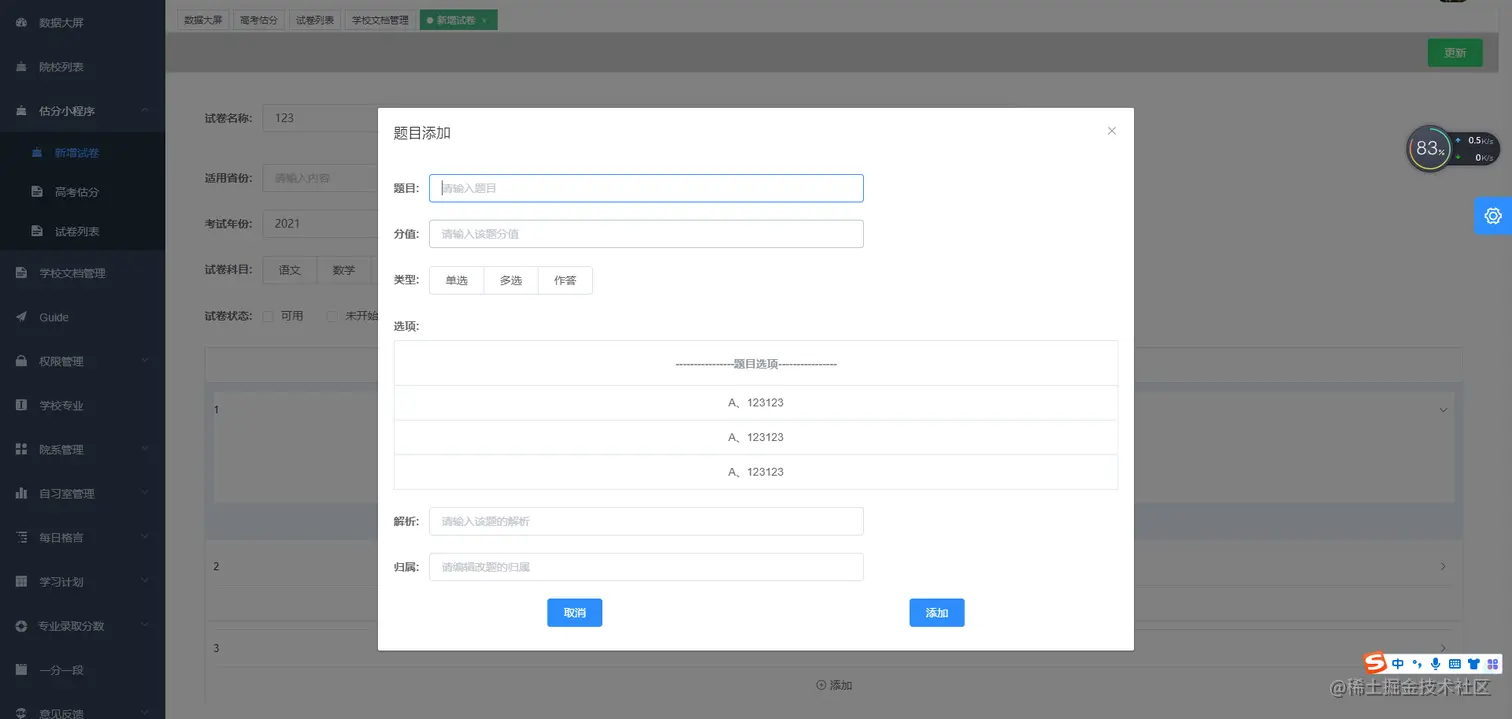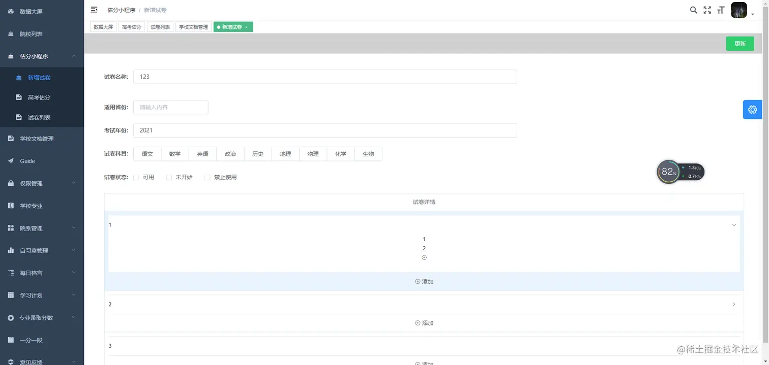 - 完善估分小程序功能,目前只有最简单的估分,后续会慢慢加上估分+选校+推荐机制。