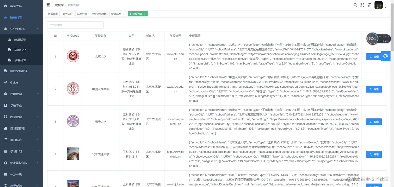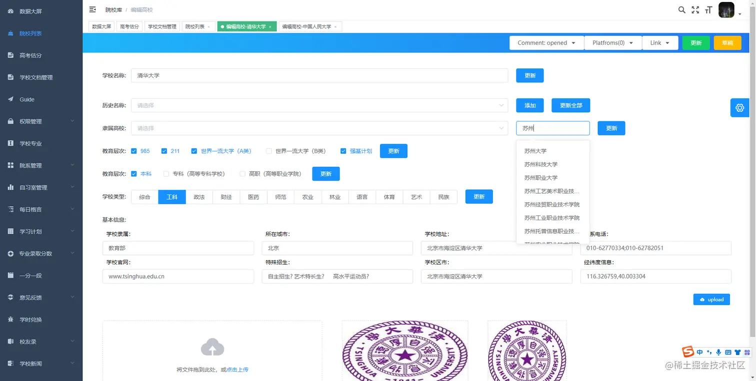 - 基于Element-Admin 的后台管理框架实现学校数据更新。