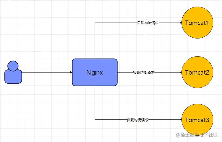 像以往的单体架构,一般可以部署多个实例,通过负载实现反向代理,由Nginx负载均衡算法实现服务端均衡,如下图所示: