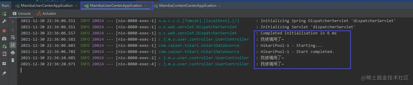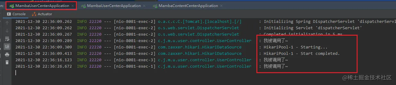 模拟启动两个用户实例:端口分别是8080和8081,内容中心(9081)服务调用用户中心服务,现在将用户中心和内容中心都注册到Nacos中: