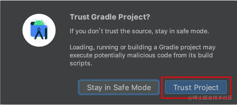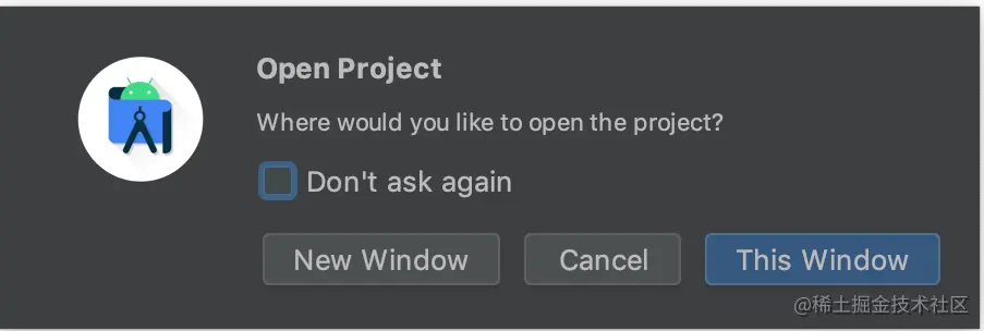 首先打开AS(可以打开一个无关项目,本地不包含需要从github上导入的项目),注意:同样需要完成上面提到的Android Studio相关环境配置。