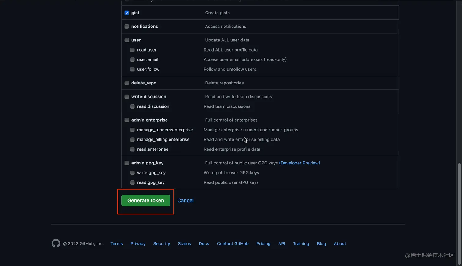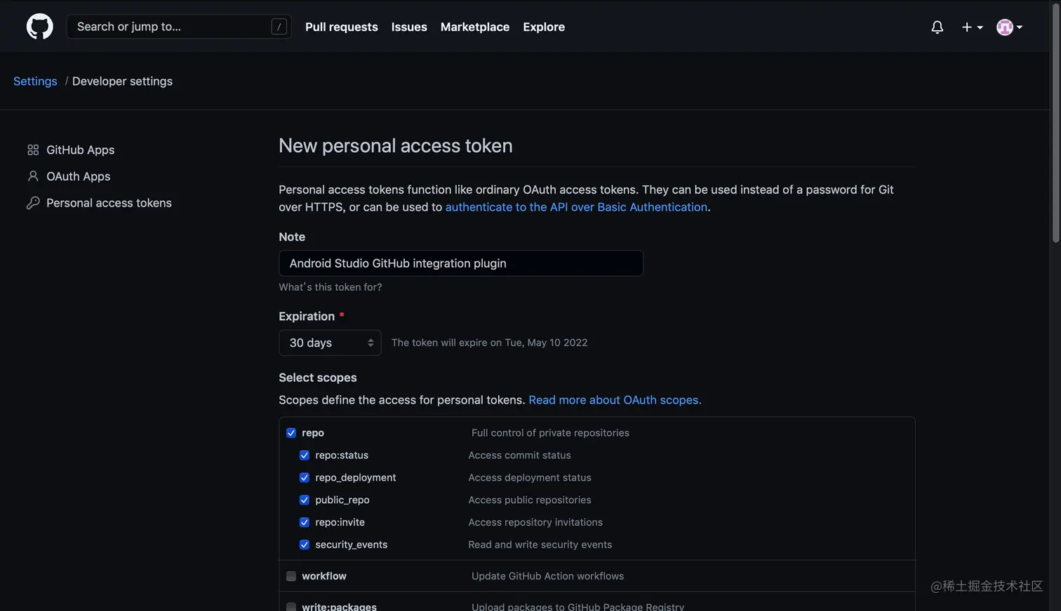 点击上图的【Generate token】,将会生成下图中的access token,然后点击复制按钮将其复制