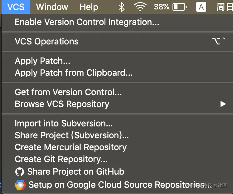 Android项目本地已经创建(项目的创建过程就不过多的讲解~),打开需要上传的项目,然后点击菜单栏【VCS】->【Share Project on GitHub】