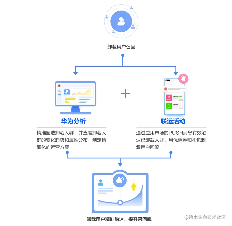 当用户卸载App彻底流失时,应用内消息等便捷的用户触达交互纽带将无法再次连通他们,且对于卸载用户的判定更是技术瓶颈。如何便捷且合理的通过运营策略将卸载用户召回,是用户运营同学迫切想知道的答案。