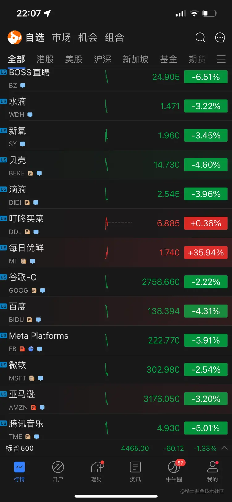 然而,当投资者担忧远在天边,看不见摸不着的所谓宏观因素时,已经有一些更确定的事情悄然发生:自4月以来,分居纳斯达克、纽交所的两家中国前置仓即时零售上市公司,每日优鲜、叮咚买菜的股价走出了“独领风骚”的趋势。