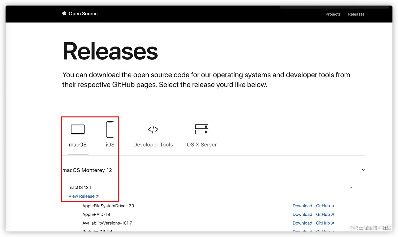 我们到苹果开源官网下载底层源码。 opensource.apple.com/ opensource.apple.com/tarballs/
