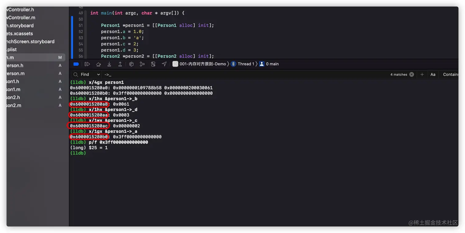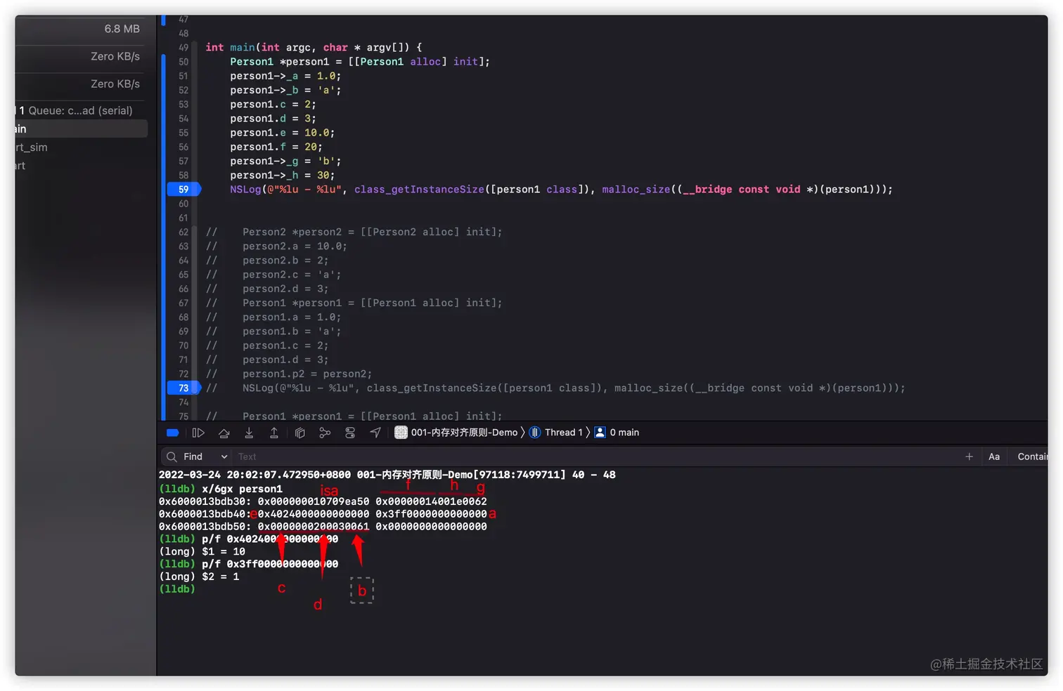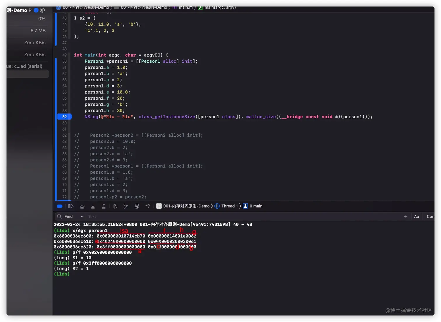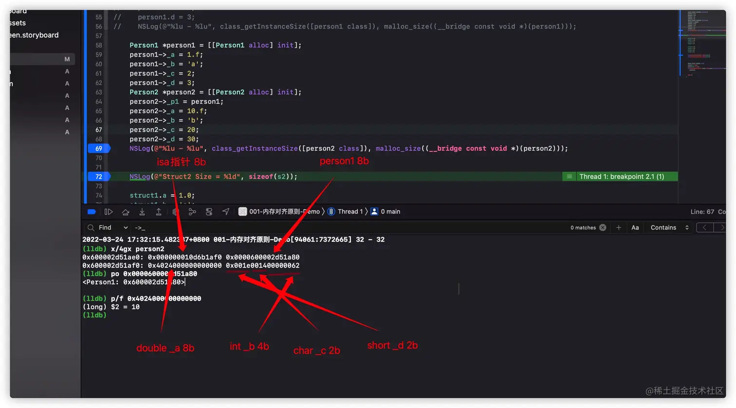2022-03-22 11:16:57.680721+0800 002-系统内存开辟分析-Demo[55961:5777855] personSize = 40