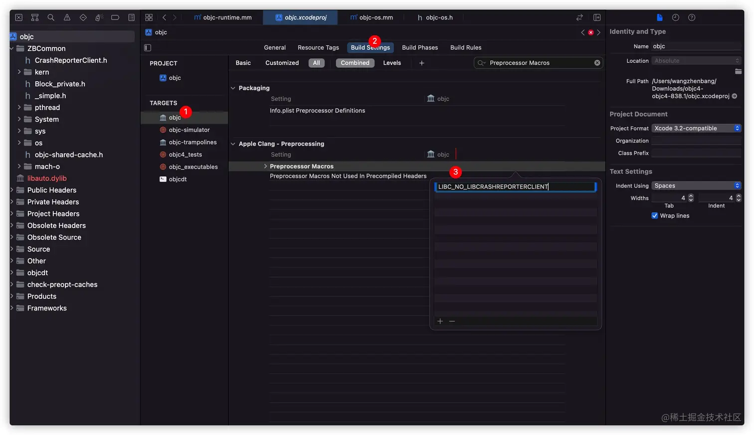 编译源码库之前,你需要准备: Mac OS 12.2 Xcode 13.2 objc4-838.1
