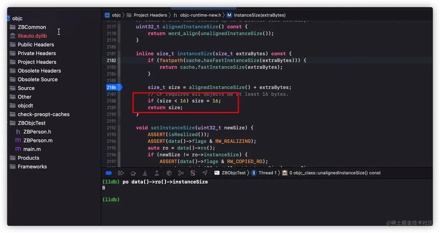 NSLog(@"personSize = %lu", class_getInstanceSize([ZBPerson class]));
