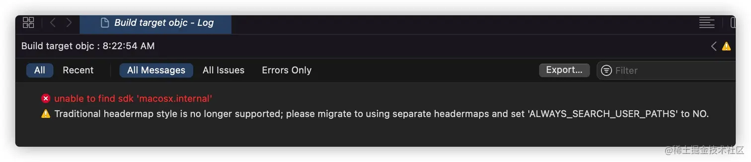 问题:编译objc源码的时候遇到Xcode error: unable to find sdk 'macosx.internal'