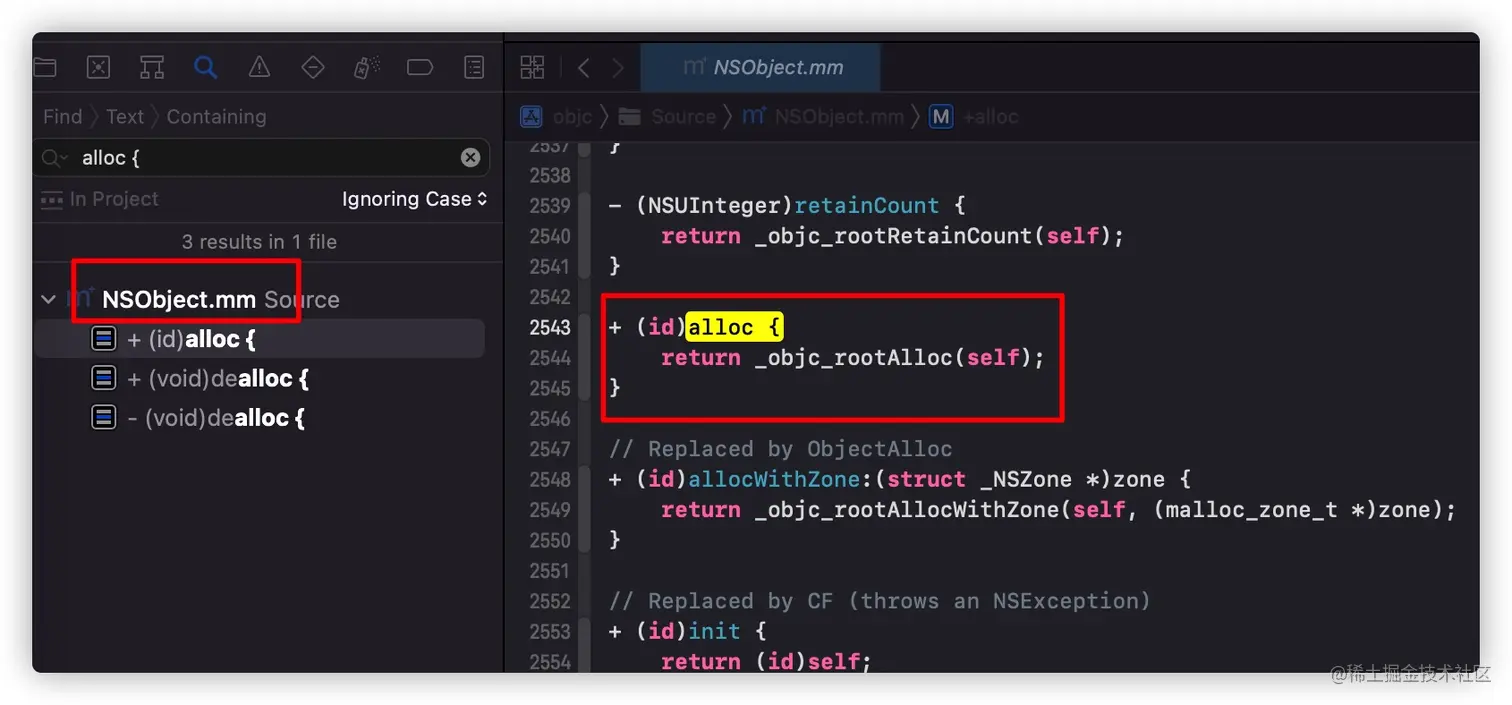 首先alloc定位到了NSObjec.mm文件,这里是一个Objective-c++汇编文件