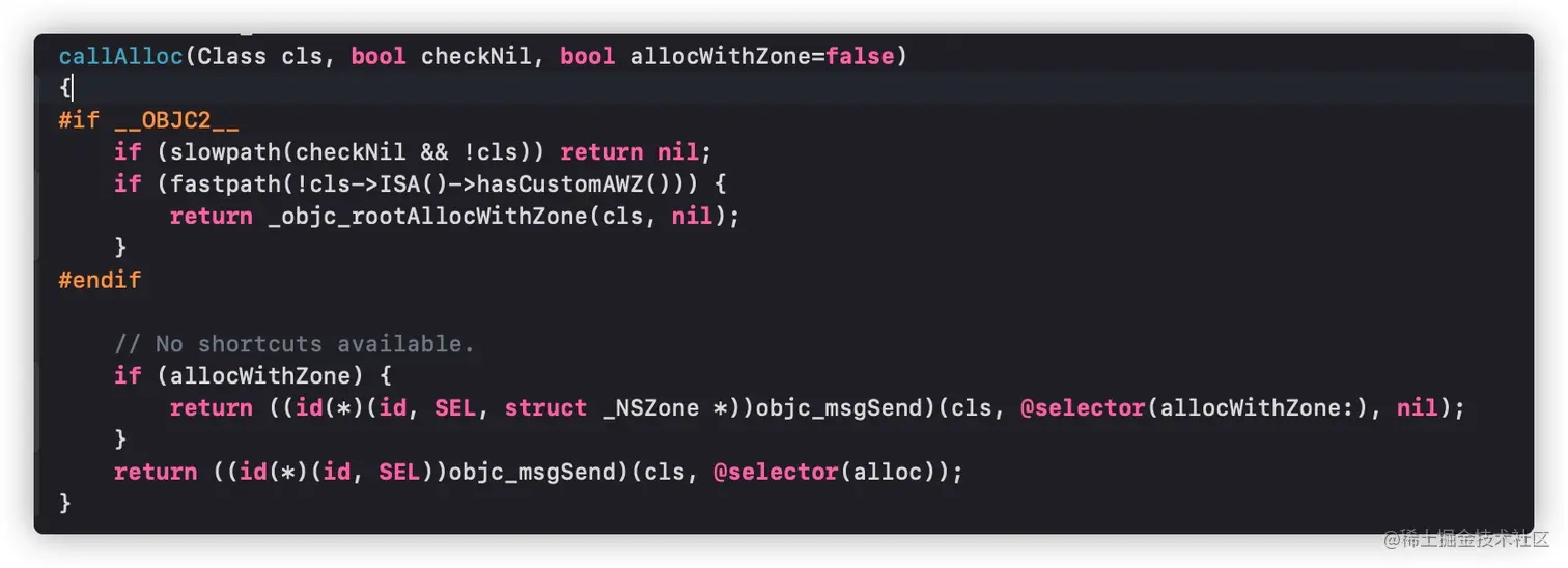 callAlloc(Class cls, bool checkNil, bool allocWithZone=false)