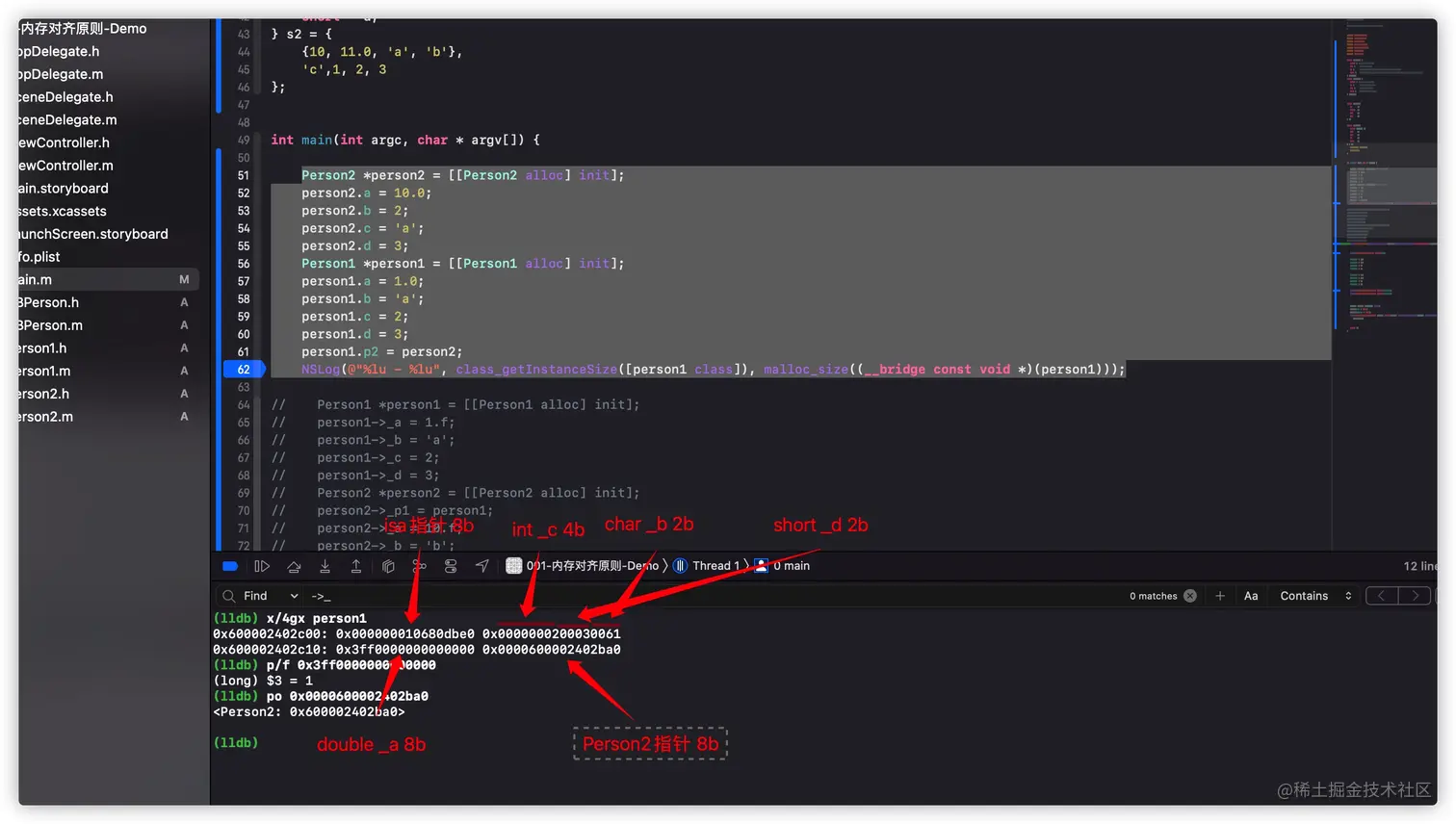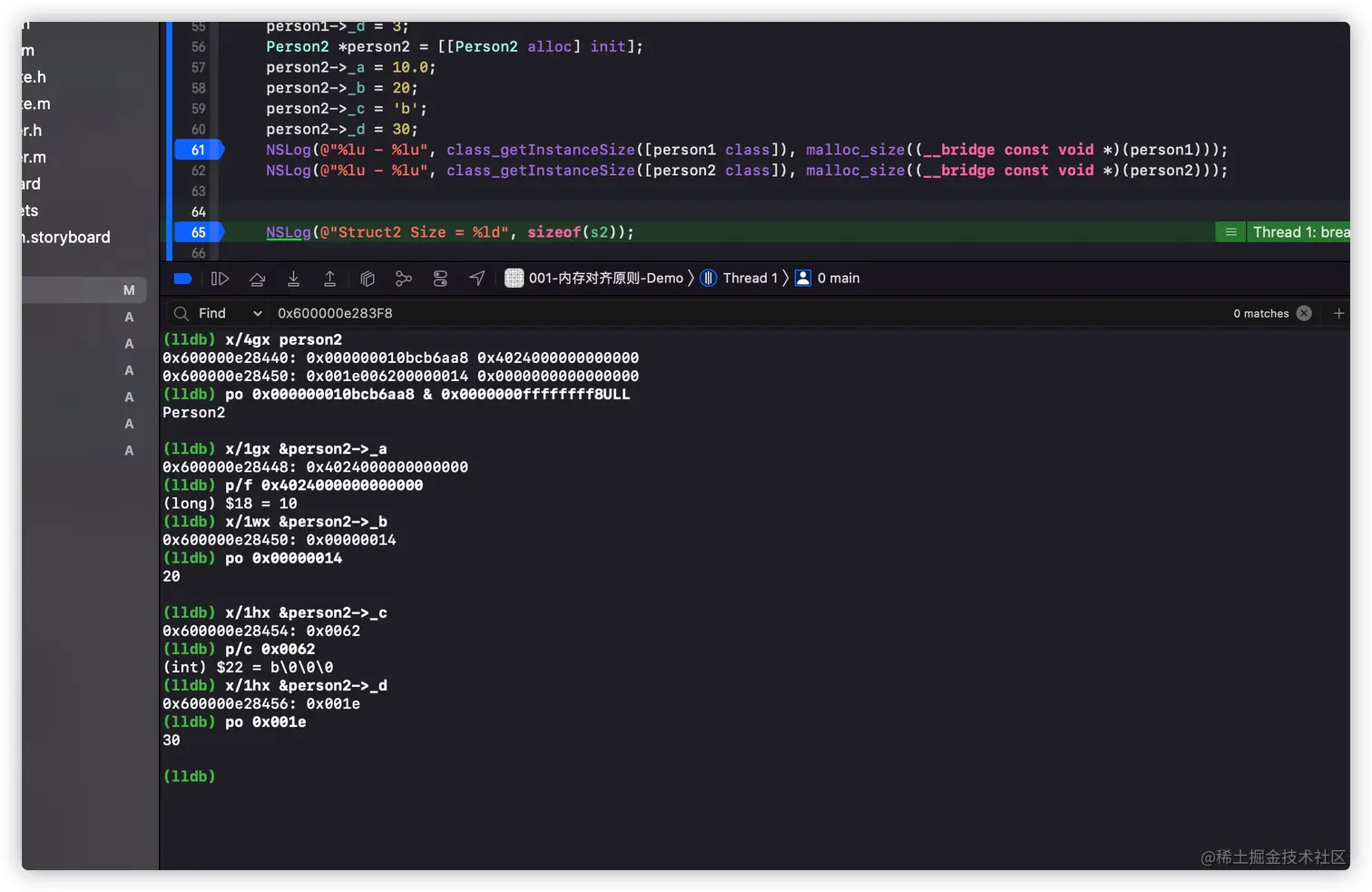 2022-03-22 11:16:57.680721+0800 002-系统内存开辟分析-Demo[55961:5777855] personSize = 40