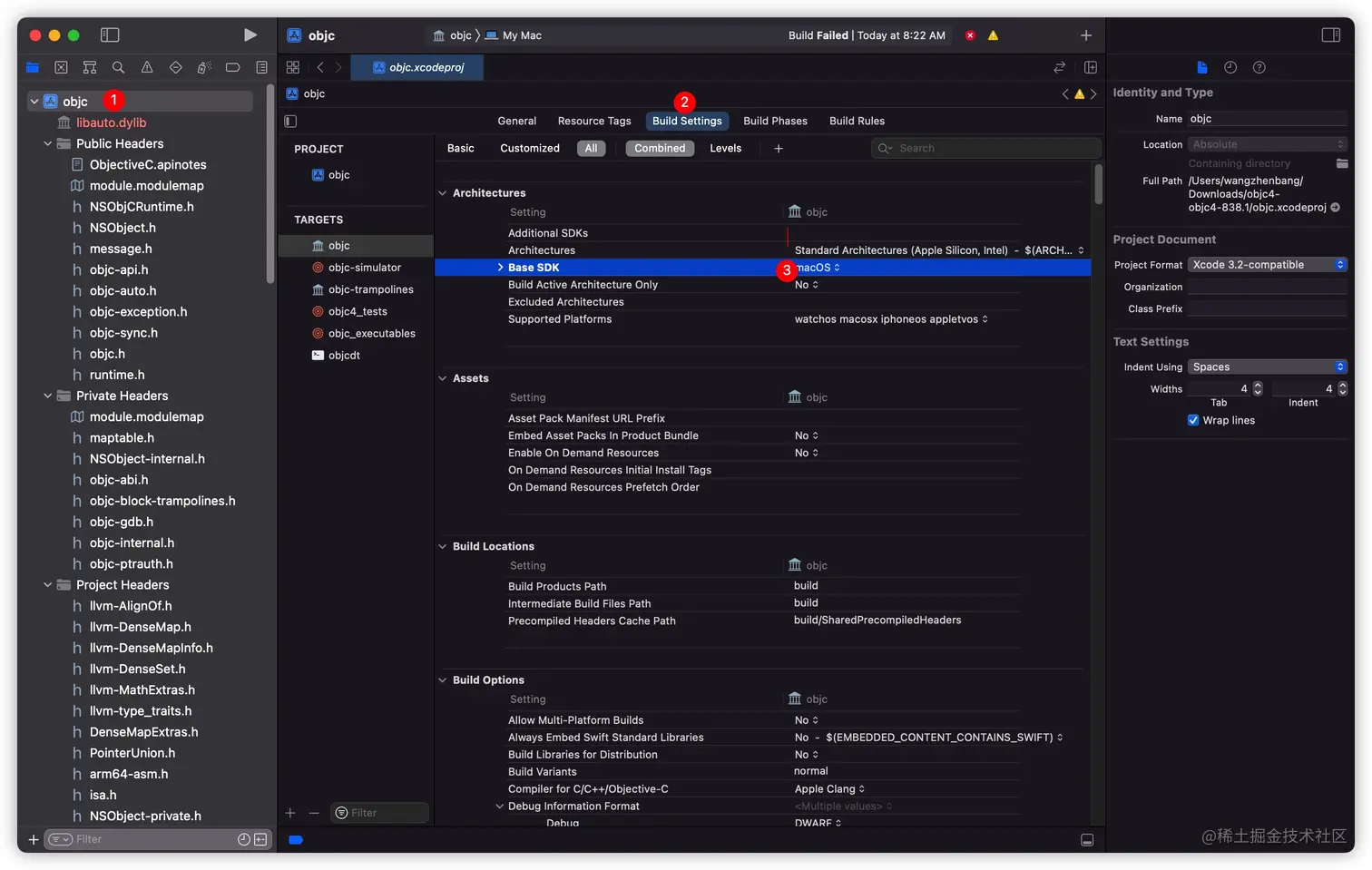 编译源码库之前,你需要准备: Mac OS 12.2 Xcode 13.2 objc4-838.1