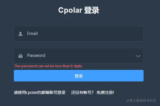 cpolar客户端也有登录界面,我们只要输入在官网注册的用户名和密码即可。
