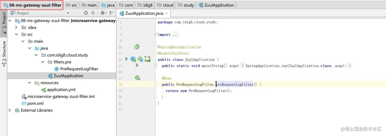 这种过滤器在请求被路由之前调用。可利用这种过滤器实现身份验证、在集群中选择请求的微服务、记录调试信息等。