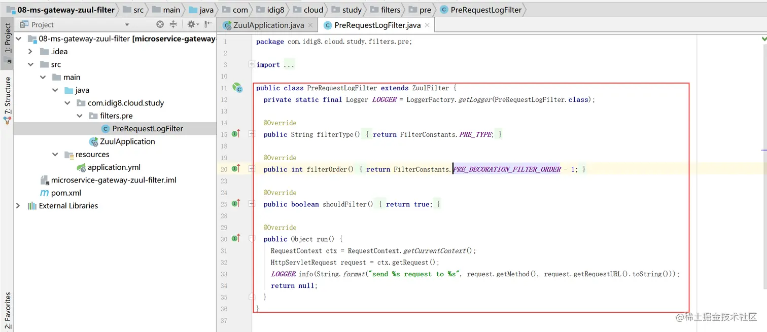 08-ms-gateway-zuul-filter 由代码可知,自定义的 zuul Filter需实现以下几个方法。
