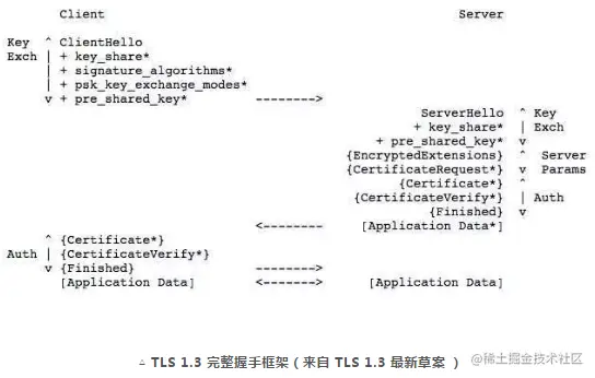 另外, SSL/TLS 1.3 优化了过程,只需要 1 个 RTT 往返时延,也就是只需要 3 次握手: