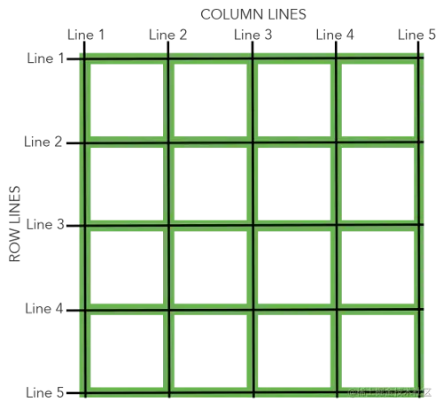 grid-column-start属性:左边框所在的垂直网格线grid-column-end属性:右边框所在的垂直网格线grid-row-start属性:上边框所在的水平网格线grid-row-end属性:下边框所在的水平网格线