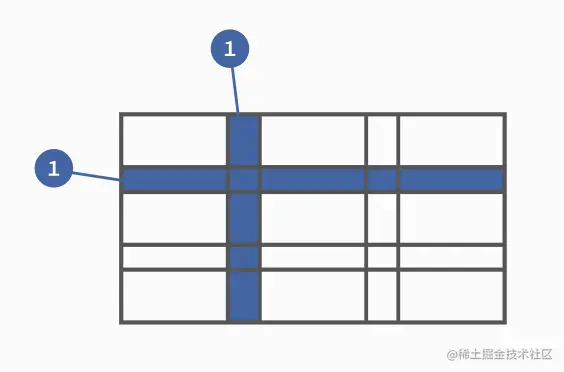 下图中,水平的深色区域就是"行",垂直的深色区域就是"列"。