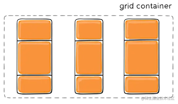 注意: 项目只能是子元素,不包含孙子元素,比如上面代码的<p>元素就不是项目。Grid 布局只对项目生效。