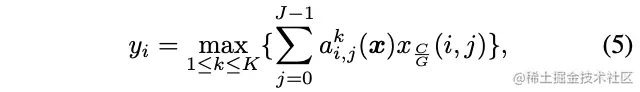 对应第维输入关于分组的偏移, Dynamic Shift-Max将多个()分组偏移进行结合: