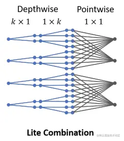 相对于常规组合,lite组合的计算更高效,由于减少了Pointwise卷积的计算量,足以弥补depthwise卷积核的增加。