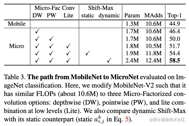 从MobileNet到MicroNet的修改对比,每个修改的提升都很大,论文还有很多关于各模块的超参数对比实验,由兴趣的可以去看看。