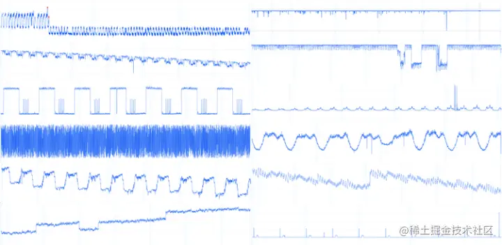 目前指标数据分类的难点在于没有明确的分类标准,不同使用者有不同的分类标准,比如业务分析人员习惯按场景划分数据类型,数据分析人员习惯按数据特征划分数据类型。(下图为不同时间序列类型示例)