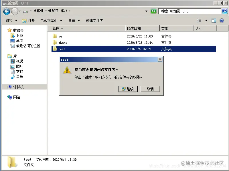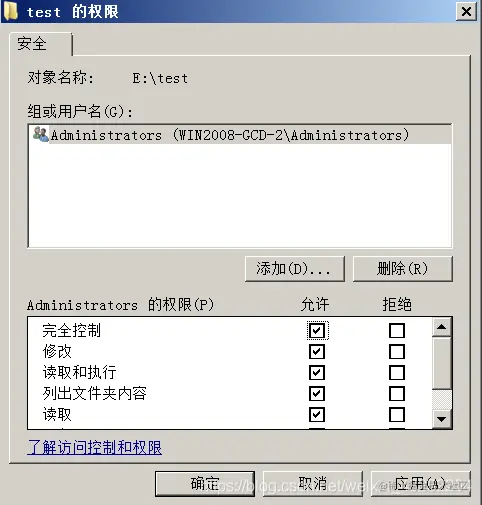 在当前administrator 用户下,我们可以对该test 文件夹进行读写等完全控制权限