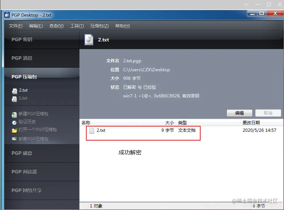 生成后缀为.pgp 的加密文件