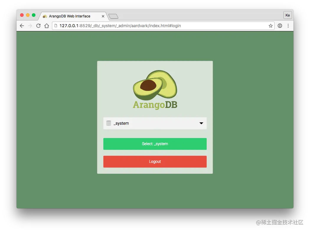 安装后,默认包含一个数据库,名叫 _system,一个默认用户, 名叫root