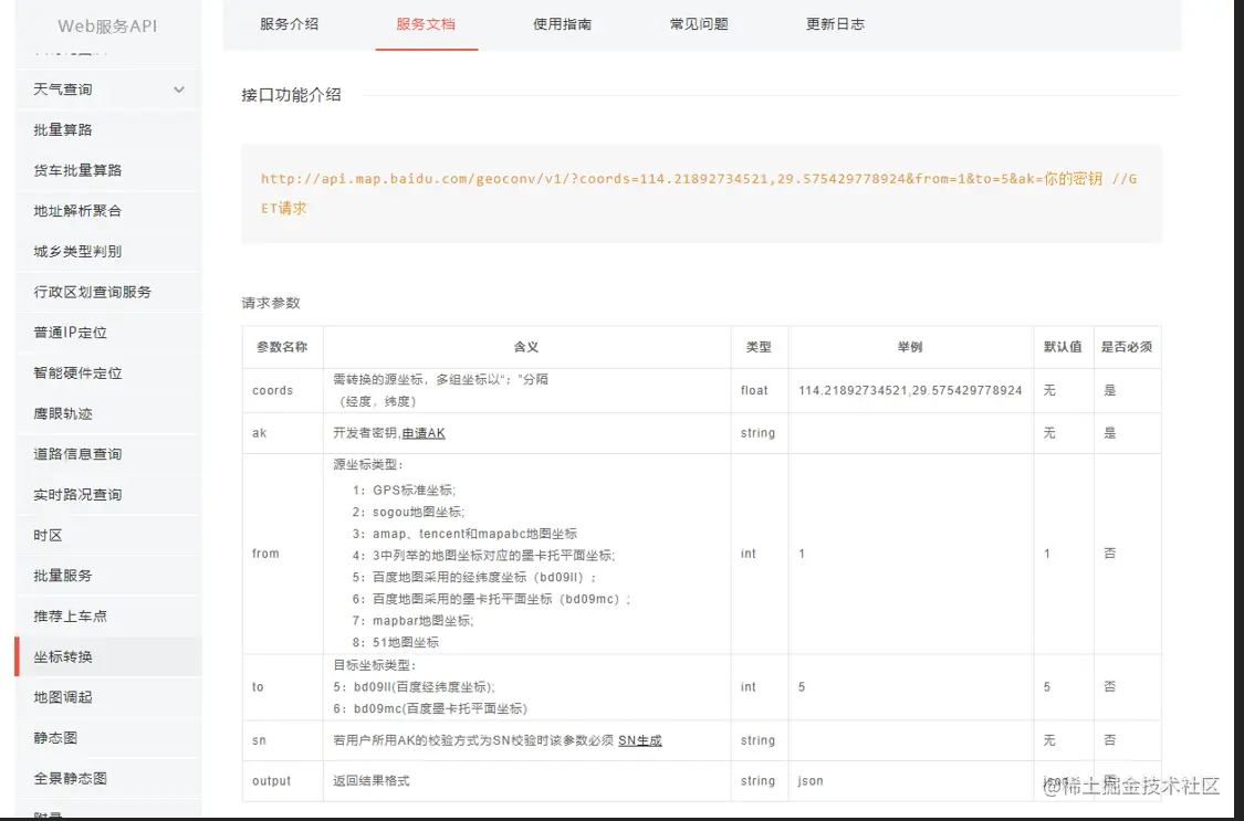 这里我们可以尝试调用一下这个接口(需要你的密钥)根据经纬度获取墨卡托坐标,后续官方案例中使用的就是墨卡托坐标系。