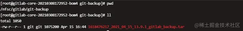 在服务器目录/nfsc/gitlab/git-backup/下会生成一个备份文件,例如下面这样的文件:
