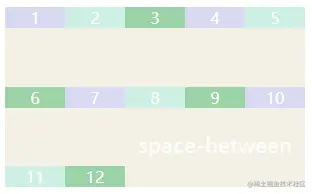 - space-between:两端对齐,项目之间的间隔都相等