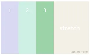 stretch(默认,项目没有设置高度,则沾满整个容器) | flex-start | flex-end | center | space-between | space-around | space-evenly(两端与项目之间间距相等)