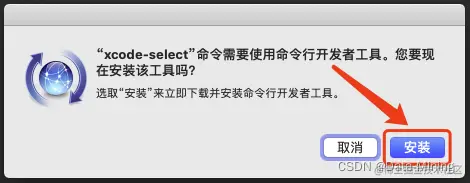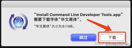 执行上述命令,系统会提示是否安装命令行开发者工具,具体如下图所示: