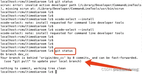 此时,回到原来的 Terminal 窗口,再次执行 git status 命令,运行成功,具体结果如下图所示: