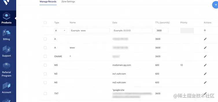 1、域名注册商绑定IP,并设置DNS指向到VPS注册商,
