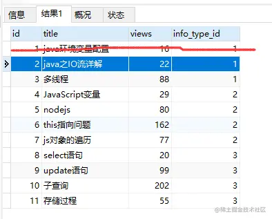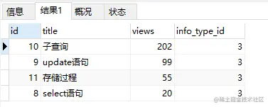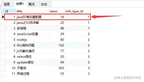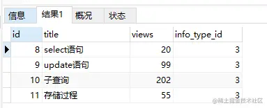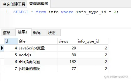 比如,当你执行SELECT * from info where info_type_id = 2;这条语句,0.001ms的时候是查询这条数据