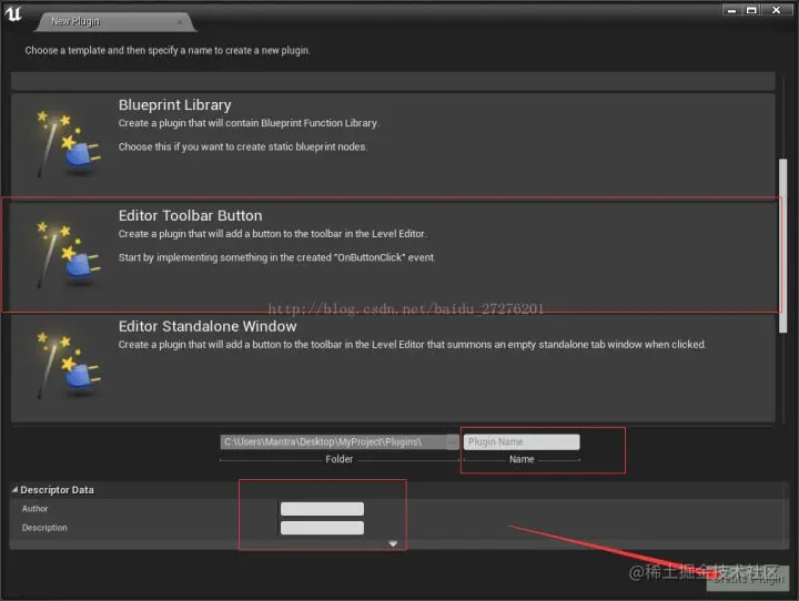 然后,我们需要新建一个插件,这里我们选择 Editor Toolbar Button 类型,注意填写插件的基本信息,具体操作参考下图: