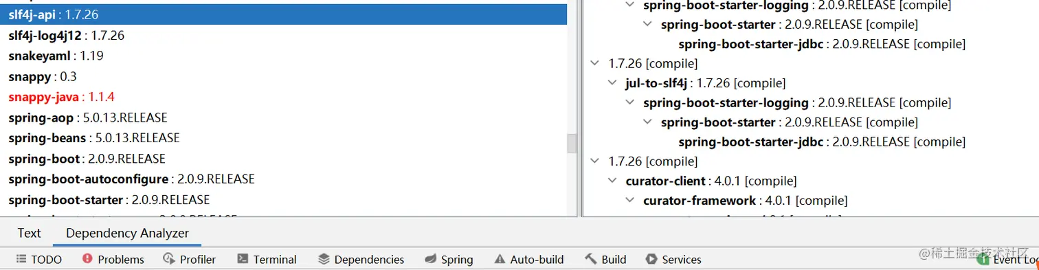 **第一个compile,表示编译时需要用到该jar包(默认),大部分jar都是