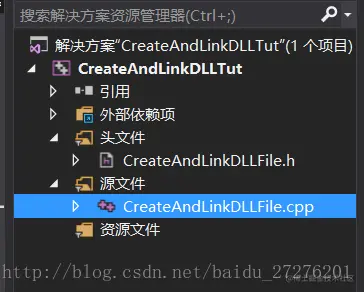 方法很简单,创建工程时选择 Visual C++>Win32 ,创建的工程名称为 CreateAndLinkDLLTut 。之后在工程引导中选择 DLL 和空工程即可。创建完成之后添加新类。此处命名为 CreateAndLinkDLL 。工程目录结构如下图: