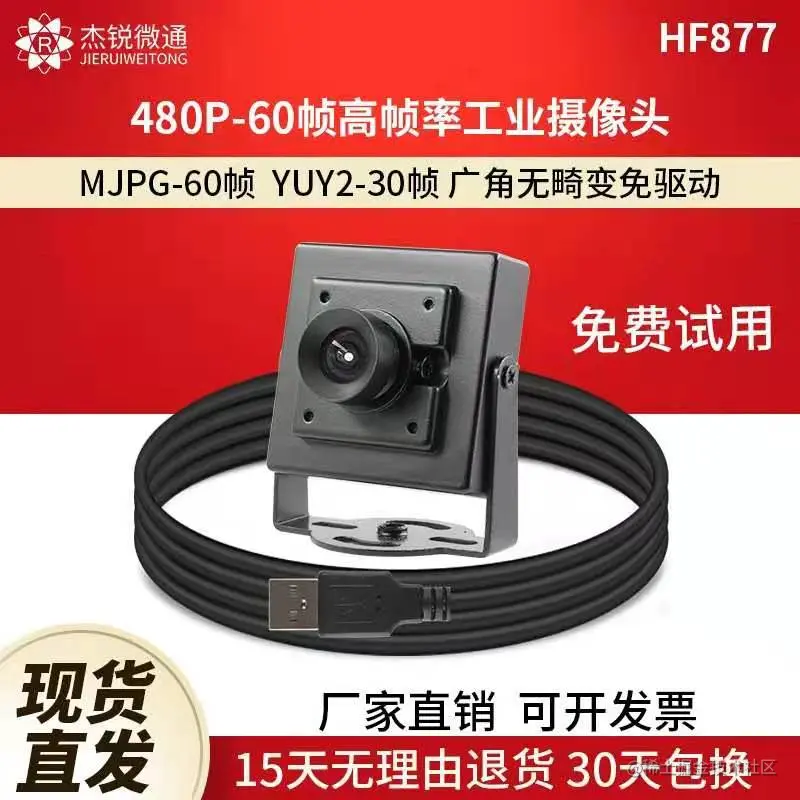 本人使用的是usb工业摄像头jpg/YUY2高速 HF877_3mm_90度无畸变60帧。