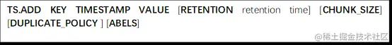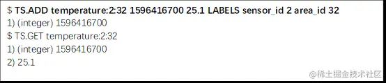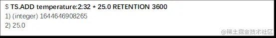 注意:不能向最后一次使用的时间戳之前添加数据。使用 TS.ADD 命令添加值的时间戳必须要大于最后一个值的时间戳。