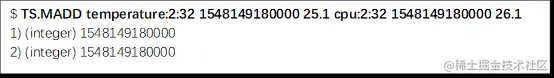 TS.MADD命令用于向已存在的时间序列集合中插入新样本数据。