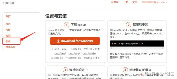 cpolar会自动跳转至官网页面,我们使用用户名登录后,点击页面左侧的“价格”,进入付费信息页面。(cpolar所有套餐均为年费)。