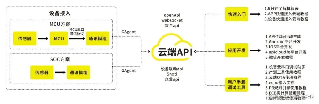设备与云端的通讯分为了GService和M2M:GService采用http协议,负责设备注册、注销等;M2M采用MQTT协议,负责进行实时性较强的数据操作。